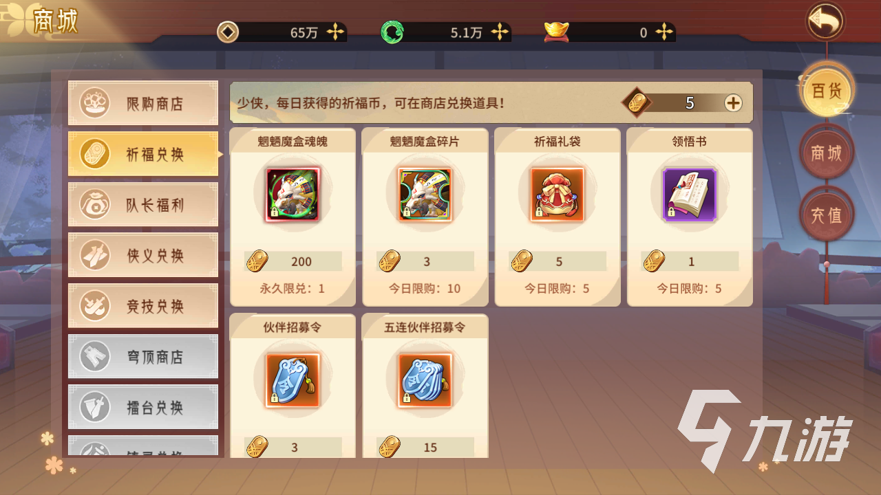 第三個(gè)方式可以通過祈福兌換來(lái)獲得,在游戲中通過一些玩法可以獲得祈福幣這個(gè)道具,使用該道具可以在祈福商店中進(jìn)行領(lǐng)悟書的兌換。一本領(lǐng)悟書要消耗一個(gè)貨幣,兌換的比例還是不錯(cuò)的,可以根據(jù)情況來(lái)茍苗。