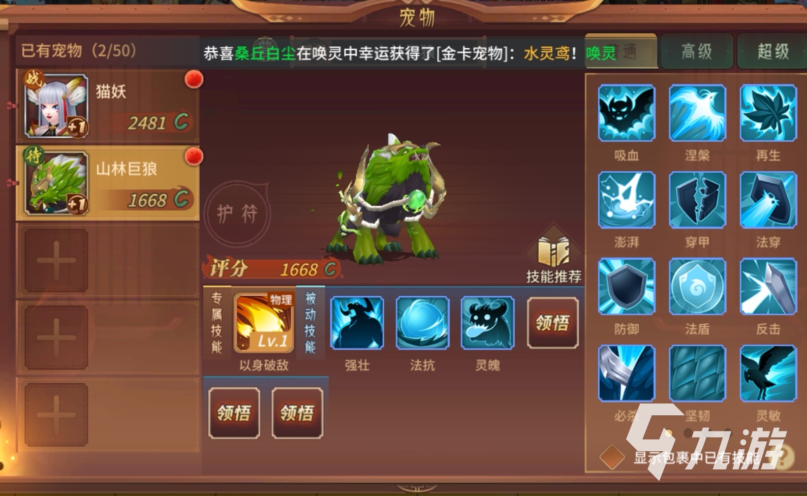 玩家可以給寵物選擇的技能是有三六九等之分的,藍(lán)色的是普通技能,紫色的是高級(jí)技能,金色的是超級(jí)技能,玩家可以通過(guò)副本來(lái)解鎖這些技能來(lái)獲得,對(duì)于玩家戰(zhàn)力的提升會(huì)有極大的幫助。