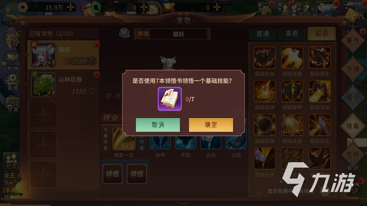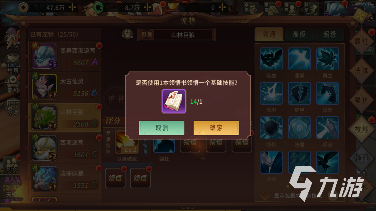 第二個(gè)領(lǐng)悟方式就是消耗領(lǐng)悟道具了,當(dāng)寵物等級(jí)達(dá)到一定階段的時(shí)候就會(huì)開(kāi)啟被動(dòng)的技能位置。在進(jìn)入到培養(yǎng)界面之后,點(diǎn)擊技能選擇對(duì)應(yīng)的寵物。之后點(diǎn)擊被動(dòng)技能的空位置,系統(tǒng)會(huì)彈出是否領(lǐng)悟的提示,選擇確定即可獲得領(lǐng)悟技能的獎(jiǎng)勵(lì)。