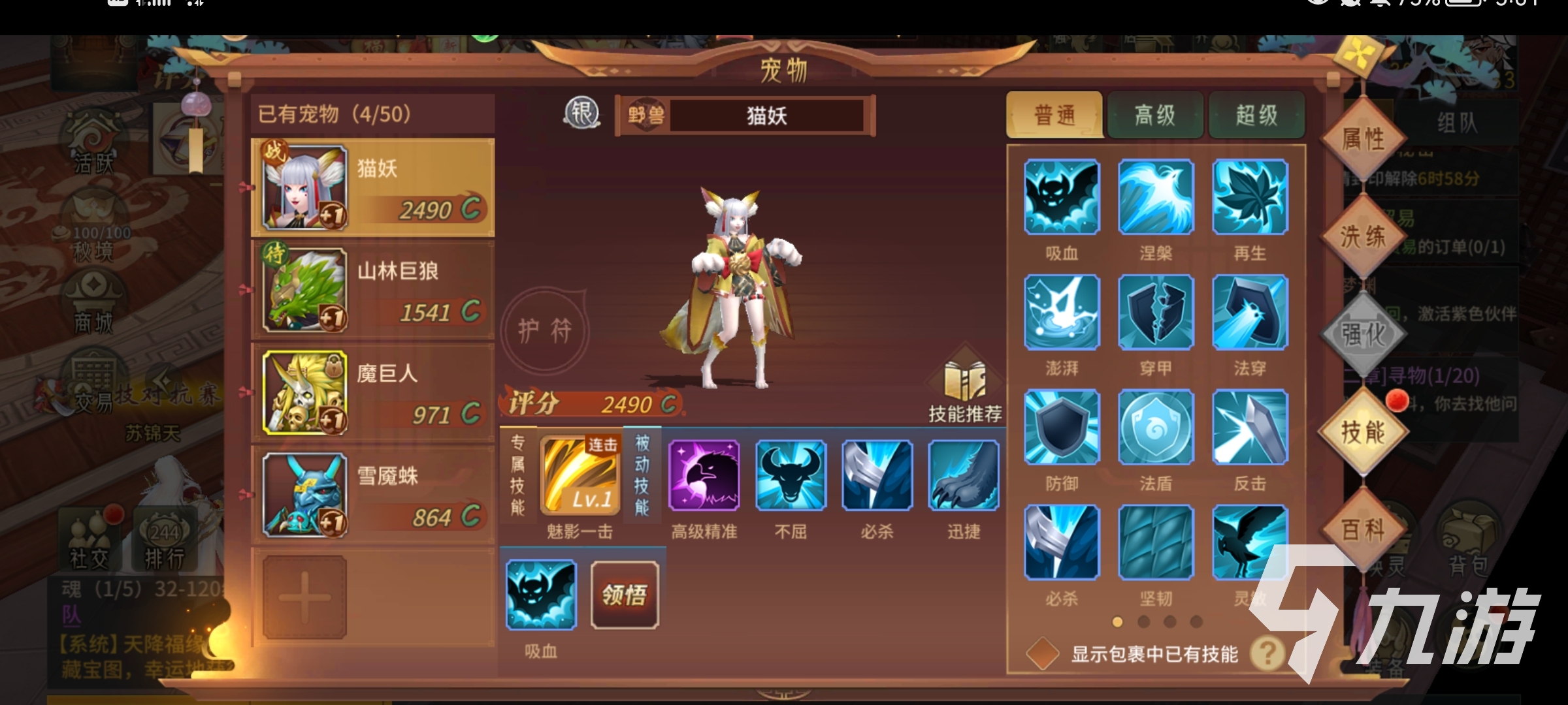 貓妖的專屬技能是【魅影一擊】:改技能可以一次性對(duì)同一目標(biāo)發(fā)動(dòng)兩次物理攻擊,從而造成大量的物理傷害,然后第二回合會(huì)休息一下,這個(gè)技能雖然是貓妖的專屬技能,不過實(shí)際傷害并不是很強(qiáng)大,反而還有點(diǎn)雞肋。