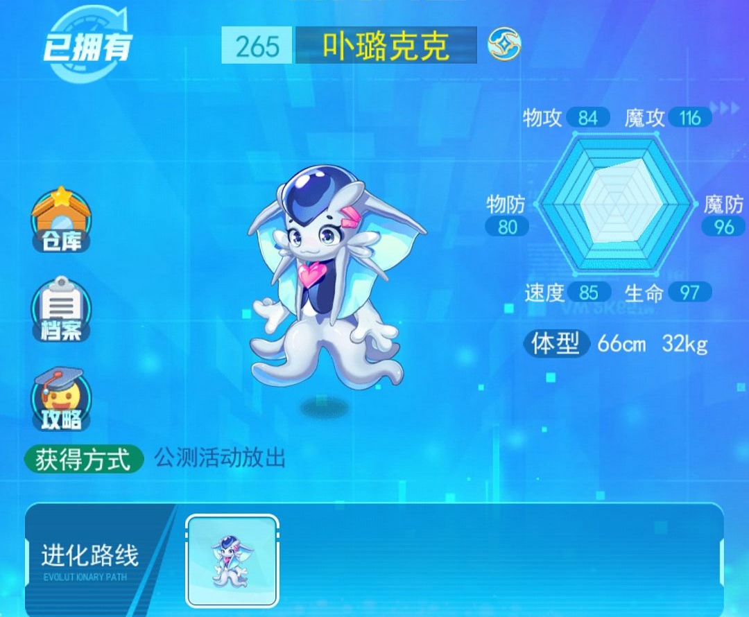 卟璐克克作為游戲的精靈之一,它通過公測活動回憶獲得,獲取方式簡單。這一精靈性格膽小,主要提升速度、魔攻等屬性。卟璐克克屬于水靈基因,玩家們沒有十足的把握,不要培養(yǎng)卟璐克克,花費(fèi)不少,還可能掉率。
