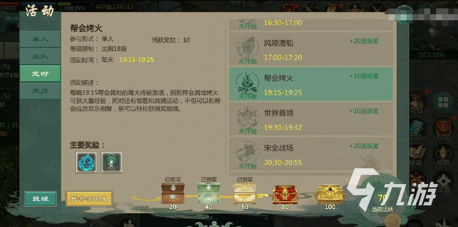 先來了解一下開啟的時間,烤火的玩法每日只會開啟一次,都是在19點15分到25分這個階段進行的,所以說想要參與的話就要注意時間了。到了開啟的時間之后,返回幫會的基地來到對應的烤火地點就行了。