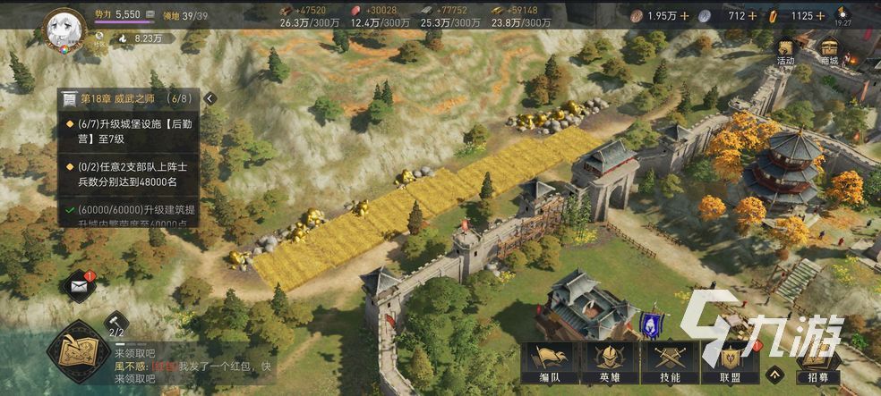 有功能設(shè)施那么自然就有產(chǎn)出設(shè)施,在重返帝國(guó)中玩家能通過磨坊、伐木場(chǎng)、石礦場(chǎng)、金礦場(chǎng)這些生產(chǎn)設(shè)施來產(chǎn)出食物、木材、石頭以及稀有的黃金。此外聯(lián)盟獎(jiǎng)勵(lì)也是獲取黃金的渠道之一,像是聯(lián)盟禮物、排行獎(jiǎng)勵(lì)、這些都可以得到食物。而聯(lián)盟寶庫(kù)中還能兌換更多豐厚獎(jiǎng)勵(lì),例如木材、黃金,帝國(guó)幣之類的。