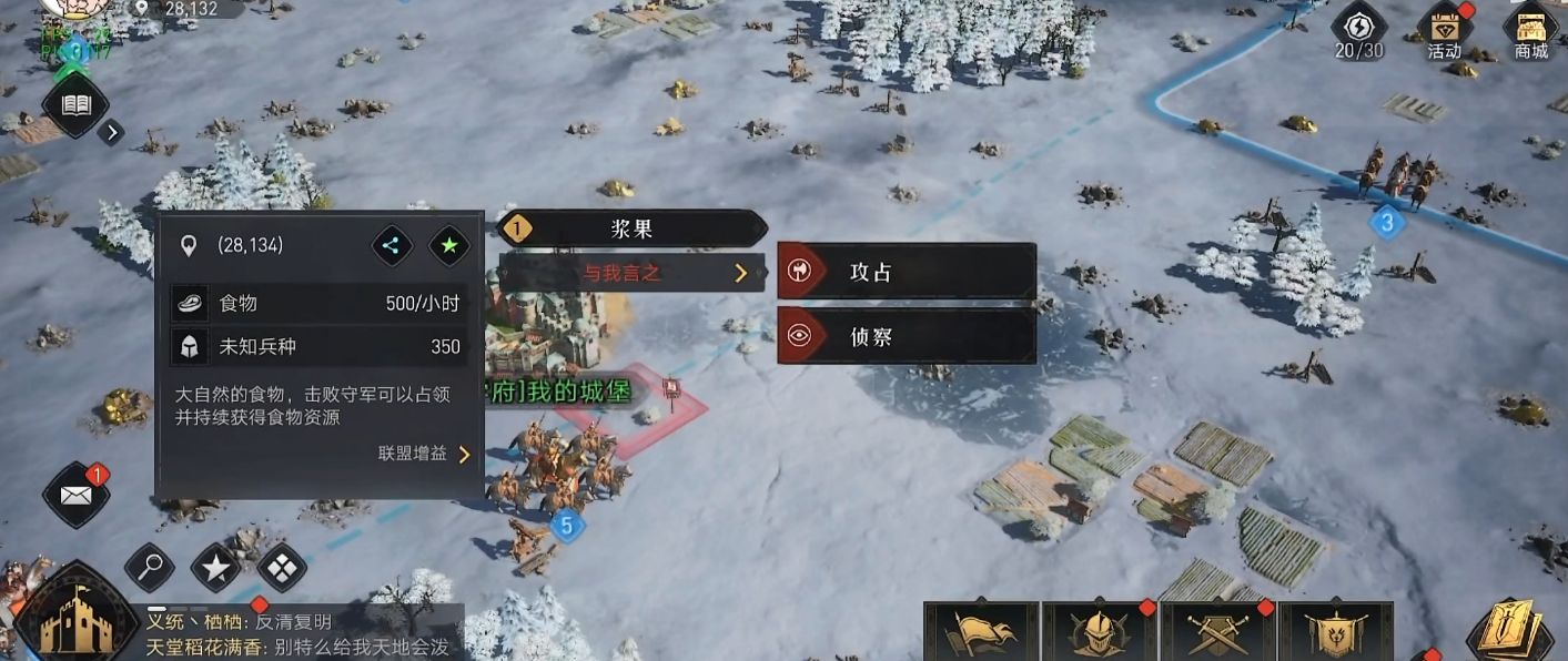 每當(dāng)玩家們進(jìn)攻之前,系統(tǒng)就會(huì)自動(dòng)提示發(fā)起當(dāng)前行為會(huì)進(jìn)入戰(zhàn)爭(zhēng)狀態(tài),而且一天都無法使用免戰(zhàn)條約,然后就需要派遣一支強(qiáng)勢(shì)的隊(duì)伍去出征即可,將其擊敗之后就可以派遣部隊(duì)駐扎占領(lǐng)該地盤。
