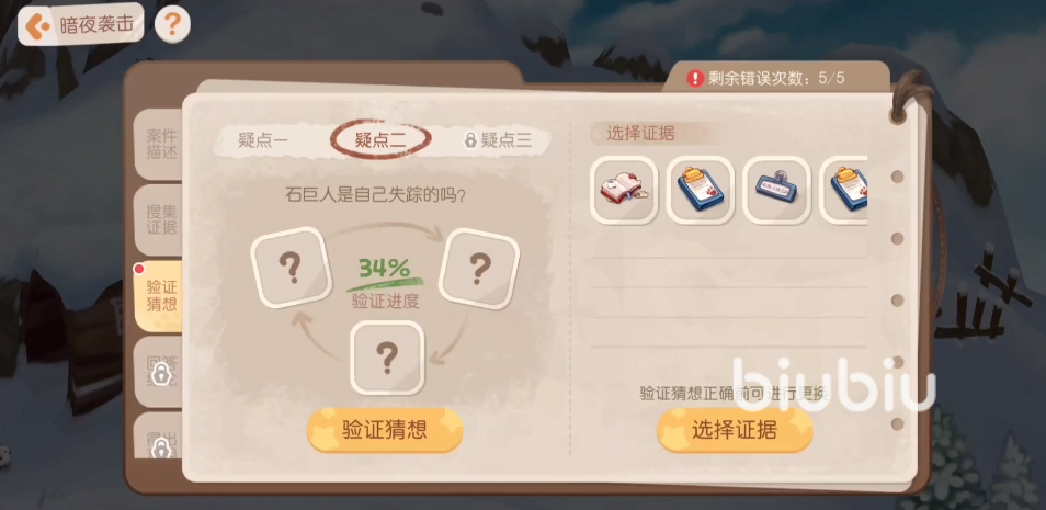 奧比島手游暗夜襲擊第四章怎么選 暗夜襲擊第四章驗證猜想證據選擇推薦