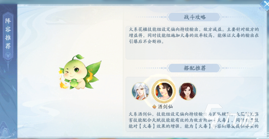 第二個(gè)推薦的是酒劍仙,酒劍仙的火系輸出能力也是不錯(cuò)的,不過(guò)最主要的還是需要酒劍仙附加火毒的一個(gè)能力。酒劍仙的技能范圍目標(biāo)比較多,同時(shí)附加火毒的幾率也比較大, 所以技能出來(lái)之后敵人身上是會(huì)帶有很多火毒的,這個(gè)不管是對(duì)于酒劍仙本身還是星璇來(lái)說(shuō)都是有很大提升的,對(duì)于隊(duì)伍的輸出增益很大。除此之外,酒劍仙的生存能力也還不錯(cuò),可以放在前排來(lái)吸收一定的傷害。