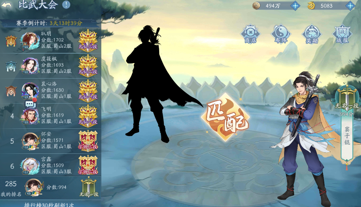 先來(lái)了解一下比武大會(huì)的基礎(chǔ)機(jī)制,這個(gè)玩法是一個(gè)匹配類型的玩法,但不是實(shí)時(shí)的匹配,只是根據(jù)玩家當(dāng)前的段位和積分來(lái)進(jìn)行匹配的。玩家點(diǎn)擊中央位置的匹配就可以進(jìn)行操作了,會(huì)很快的匹配到對(duì)手的。