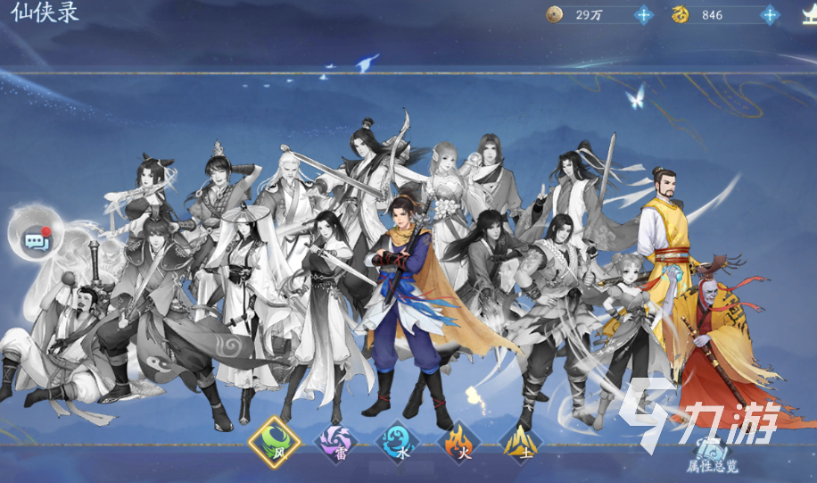 點(diǎn)擊圖標(biāo)進(jìn)入到界面之后,玩家可以看到游戲中俠客的一個(gè)圖鑒顯示,這個(gè)顯示是分為屬性的,默認(rèn)顯示的是風(fēng)屬性的俠客。在仙俠錄里面激活的俠客是彩色的,沒(méi)有激活的俠客是灰色的。