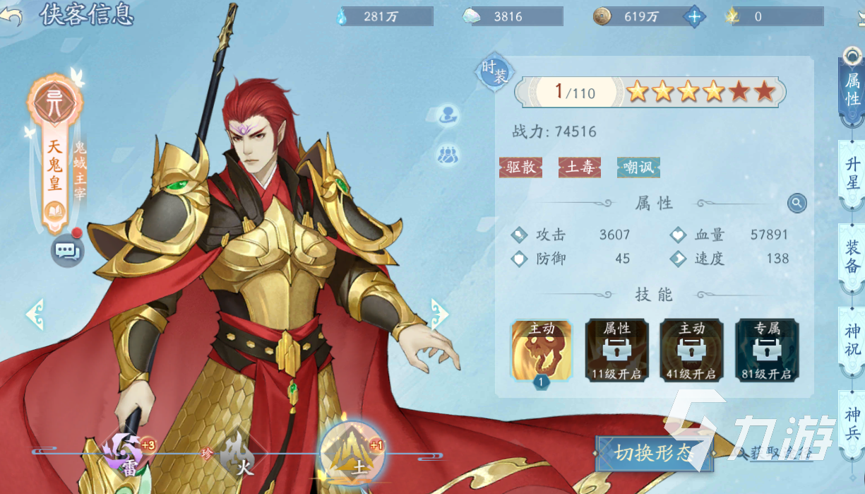 第四個(gè)推薦的是土系天鬼皇,這個(gè)俠客在防御能力上是不錯(cuò)的,而且還有幾率附加土毒,同時(shí)還帶有嘲諷的控制效果,對(duì)于敵人的攻擊節(jié)奏是有一定打斷概率的。