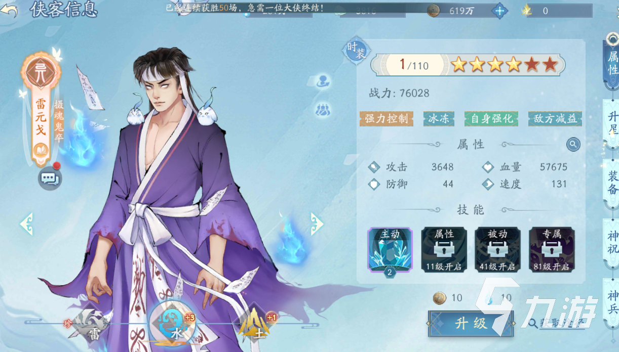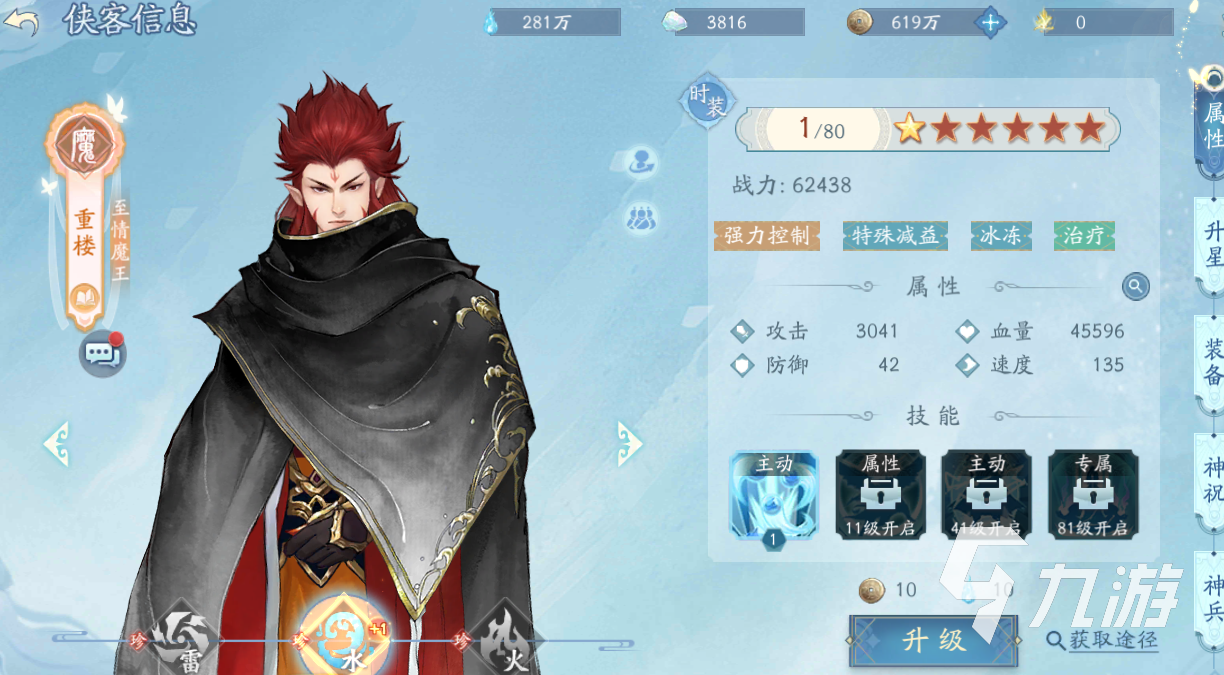 在隊(duì)伍的搭配上第一個(gè)推薦的是雷元戈,這個(gè)俠客要選擇水屬性的,和重樓一樣,水屬性的雷元戈是屬于控制定位的。因?yàn)橹貥堑目刂剖强梢猿缘嚼自昙寄軠p益效果的,所以在實(shí)戰(zhàn)中有不錯(cuò)的發(fā)揮。而且隊(duì)伍中搭配兩個(gè)控制的話,冰凍能力一旦觸發(fā)之后,輸出俠客是有很好輸出空間的, 也變相的保護(hù)了輸出俠客的安全。