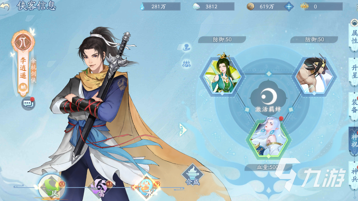 李逍遙這個俠客在屬性上是有風(fēng)、水和雷這三種設(shè)定的,不過在基礎(chǔ)的設(shè)定上都可以看做一個輸出的,尤其是雷屬性的逍遙,輸出能力是最強(qiáng)的。那么在神祝的搭配上,通用性是最為適合李逍遙的。