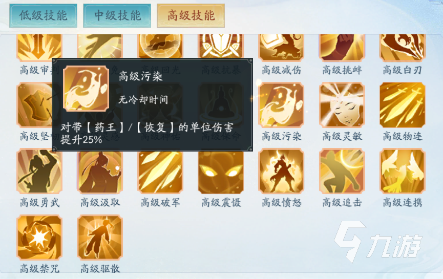 第二個(gè)推薦的是“高級(jí)污染”,這個(gè)技能適合在PVP中攜帶使用,因?yàn)榧寄艿男Ч轻槍?duì)帶有“藥王”和“恢復(fù)”單位來(lái)進(jìn)行克制的。只要敵人是帶有這兩個(gè)屬性能力其中之一,那么就會(huì)提升25%的傷害。大家都知道在競(jìng)技中恢復(fù)俠客是很多的, 帶上這個(gè)技能就可以獲得25%的傷害提升,何樂(lè)而不為呢?