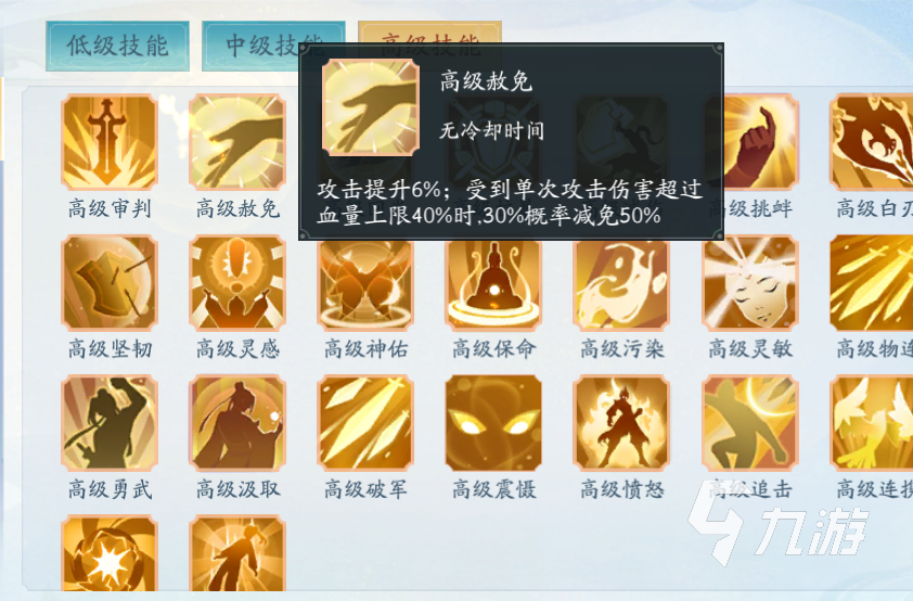 第一個(gè)推薦的是“高級(jí)赦免”這個(gè)技能,該技能被動(dòng)可以帶來(lái)6%的攻擊力提升,對(duì)于輸出俠客來(lái)說(shuō)是很有效果的。而另一個(gè)能力是單次受到的傷害如果說(shuō)超過(guò)了血量的40%的,那么就可以有30%的幾率赦免掉50%的傷害。這個(gè)對(duì)于高輸出的敵人來(lái)說(shuō)是有很強(qiáng)克制的,而且觸發(fā)的幾率也是很不錯(cuò)的,30%看起來(lái)不高,實(shí)際上觸發(fā)還是很頻繁的。