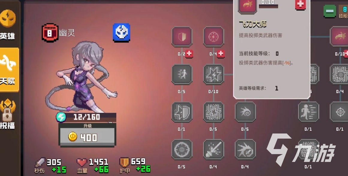 來源: 極光 作者: 美好時光 2022年05月16日 15:34無序次元這款有趣的像素肉鴿地牢游戲里有許多有趣的角色,像是幽靈阿伊爾??赡茉S多小伙伴還不知道無序次元幽靈怎么樣?那么這里便給大家?guī)頍o序次元刺客幽靈天賦與武器選擇攻略。