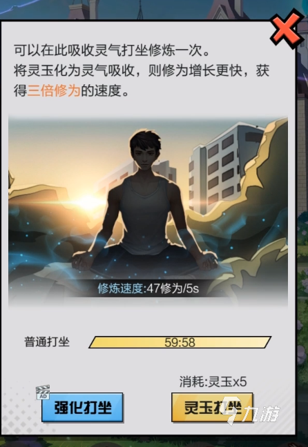 在點(diǎn)擊開始打坐之后,玩家可以再次選擇強(qiáng)化打坐,這個打坐的玩法可以讓玩家獲得部分的額外修為獎勵, 但是該方式要觀看一段廣告 才行的,這個就看玩家自己來選擇了。