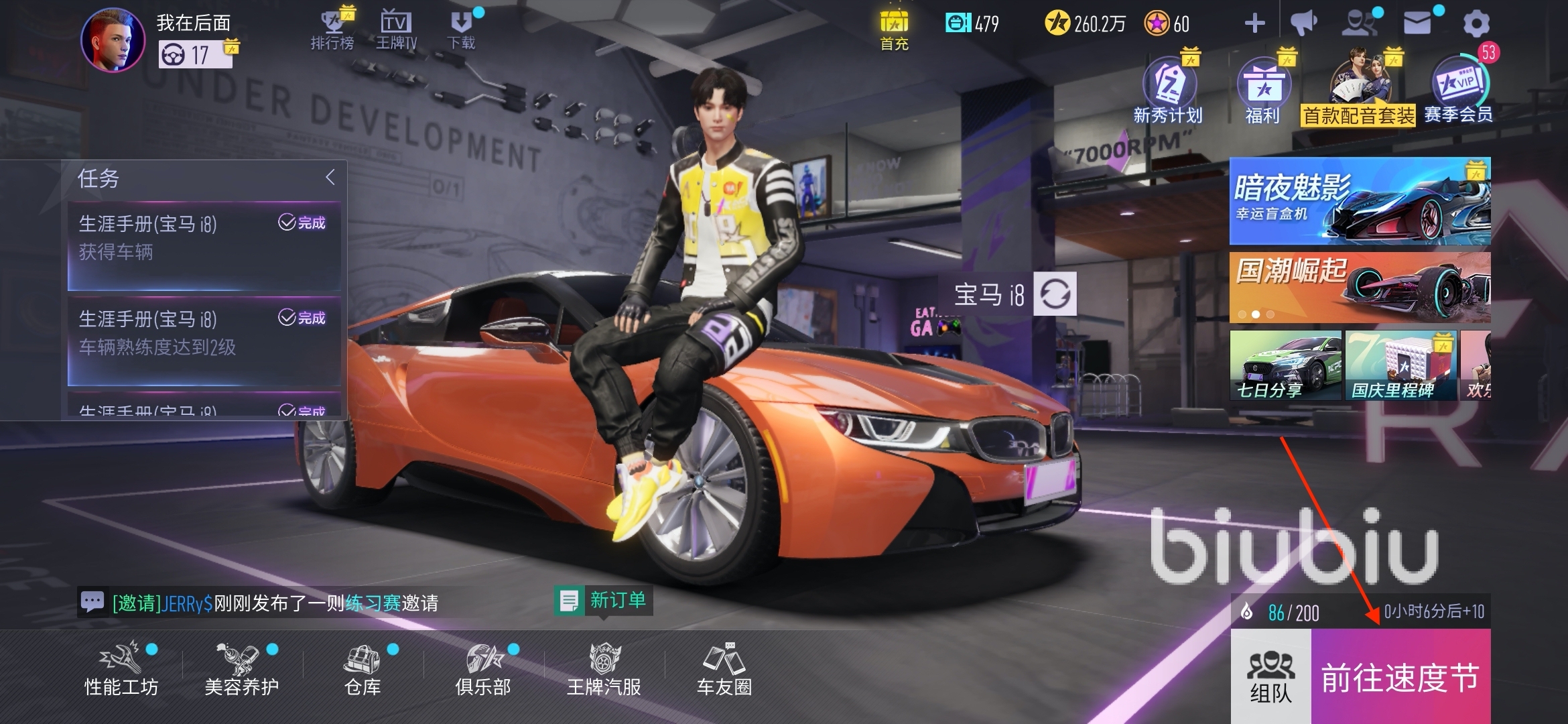 1、進(jìn)入游戲,在游戲主界面右下方點(diǎn)擊“前往速度節(jié)”按鈕。