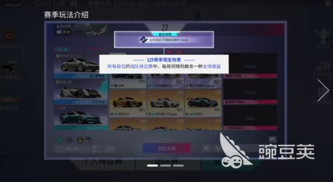 首先新賽季排位賽時(shí)間為9月26日到11月2日,新賽季首先帶來的最新的效果全場(chǎng)增益,全場(chǎng)增益包含極速、能量、集氣三種,每局會(huì)隨機(jī)觸發(fā)一種對(duì)所有人都會(huì)生效,并且段位達(dá)到宗師車手4后,對(duì)局將會(huì)變成翻牌選車,雙方首位選定車輛的玩家將獲得額外的飛升增益。