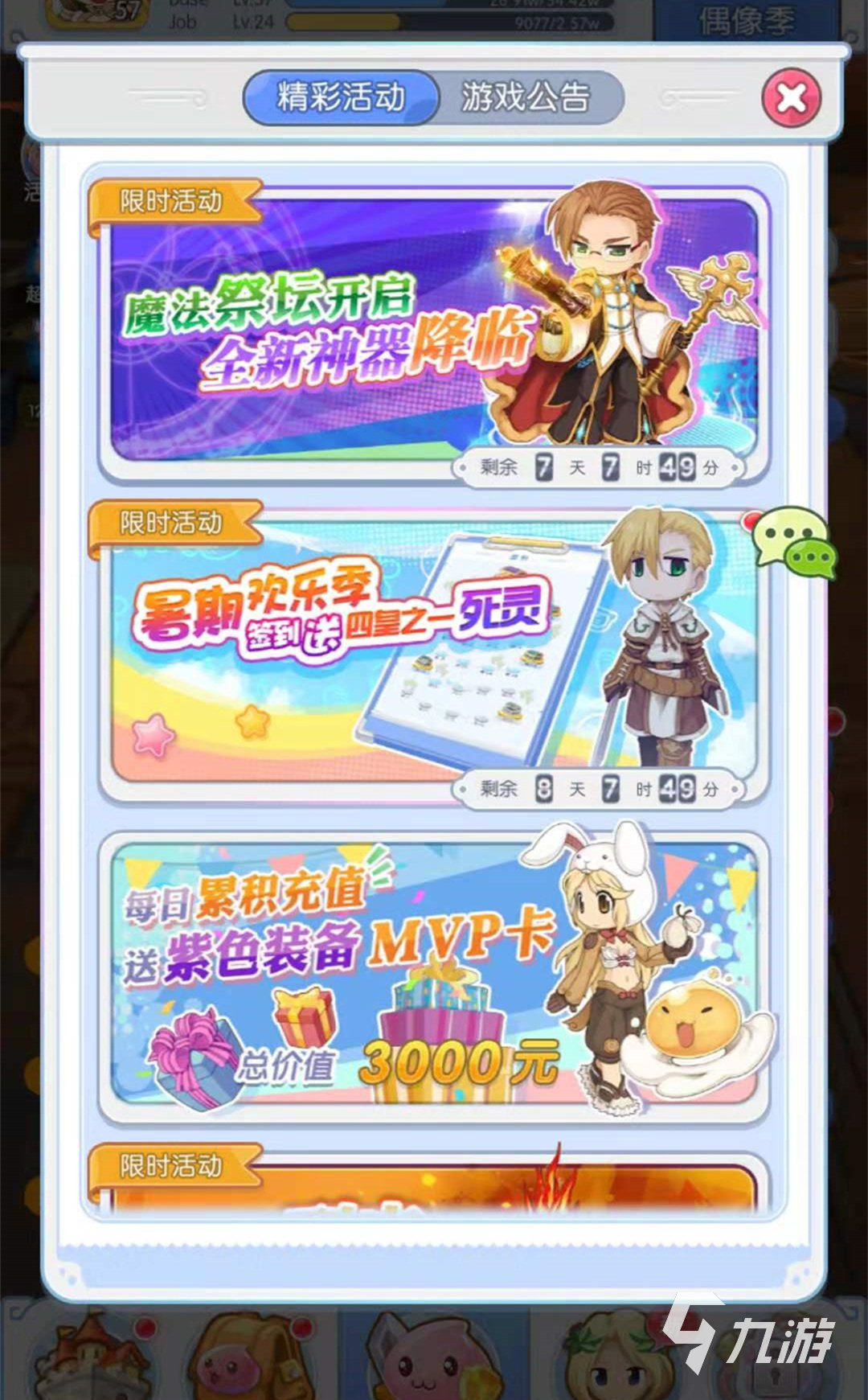關(guān)于魔法祭壇的玩法只有1種途徑能尋找到,那就是要求玩家點(diǎn)擊主頁(yè)面左上方的活動(dòng)公告進(jìn)入,點(diǎn)擊精彩活動(dòng),在精彩活動(dòng)中有著非常多的活動(dòng)玩法,點(diǎn)擊第一個(gè)限時(shí)活動(dòng),名為魔法祭壇開(kāi)啟,全新神器降臨,玩法非常簡(jiǎn)單。