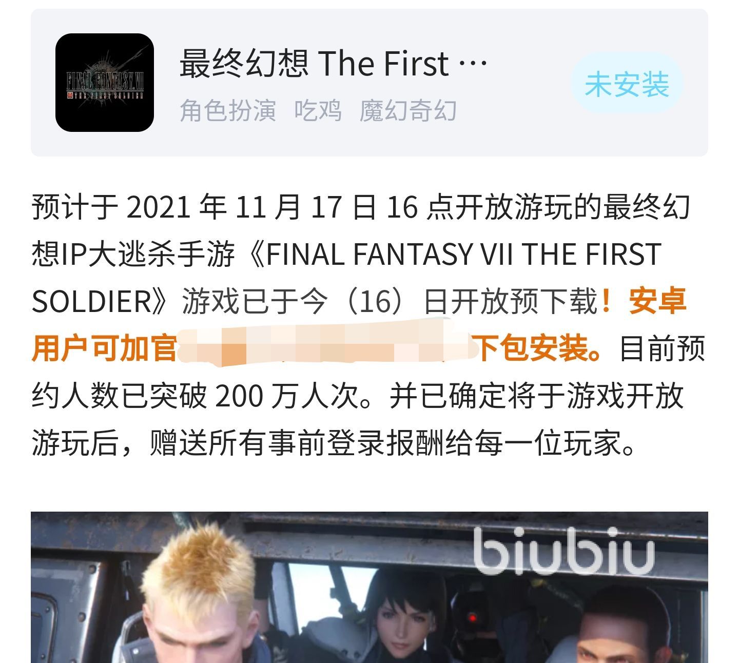 最終幻想7第一戰(zhàn)士安卓下載方式介紹:此次最終幻想7第一戰(zhàn)士手游將于11月17號(hào)正式開啟上線,在游戲開測(cè)之前,游戲官方已經(jīng)在10月27號(hào)進(jìn)行了開服登錄,此次上線的服務(wù)器承載人數(shù)將不會(huì)和上次差多少,因此先到先得,目前游戲僅上線海外服,中國(guó)只上線港臺(tái)服,所以小伙伴們?cè)谕娴臅r(shí)候可以使用biubiu加速器進(jìn)行流暢體驗(yàn),游戲使用的語(yǔ)言將自帶繁體中文,這可以極大的提高各位玩家的游戲體驗(yàn)。