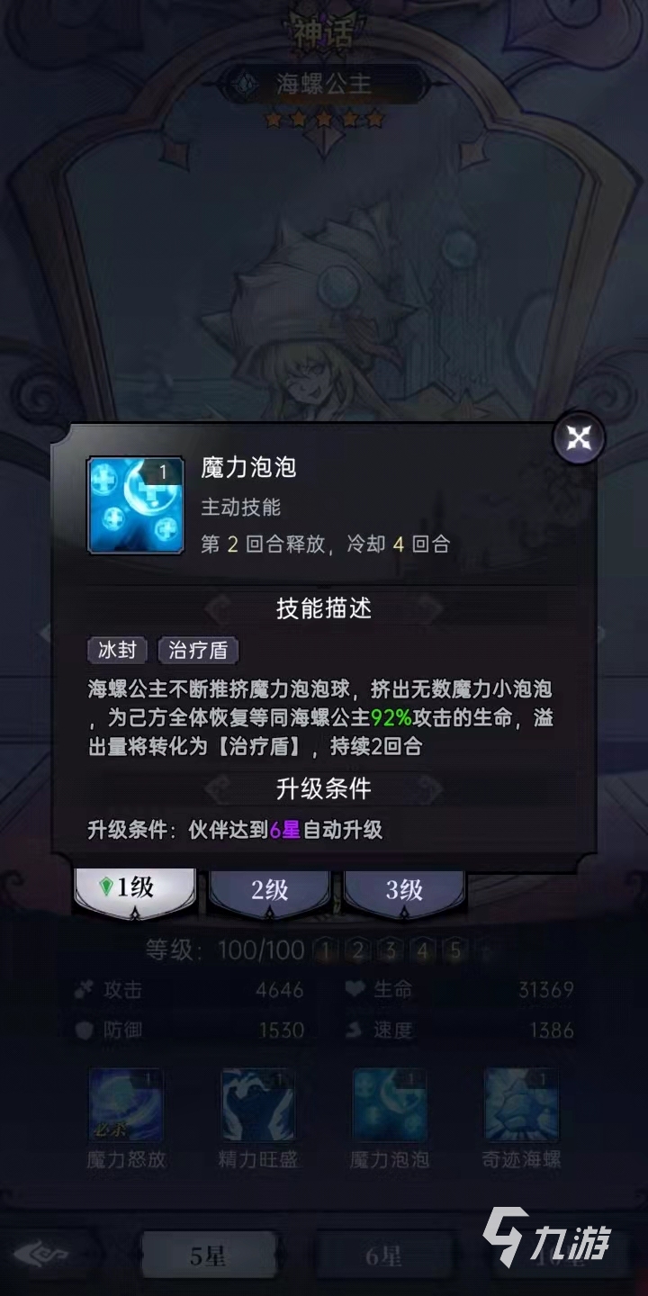 海螺公主的三技能也是一個主動技能,叫做魔法泡泡,聽起來是不是非??蓯勰?,這個技能屬于治療技能,同樣擁有一定的冰凍效果,命中敵人之后可帶來一定的攻擊,并且有概率進(jìn)行冰凍,奶量也是根據(jù)海螺公主的星級決定的。