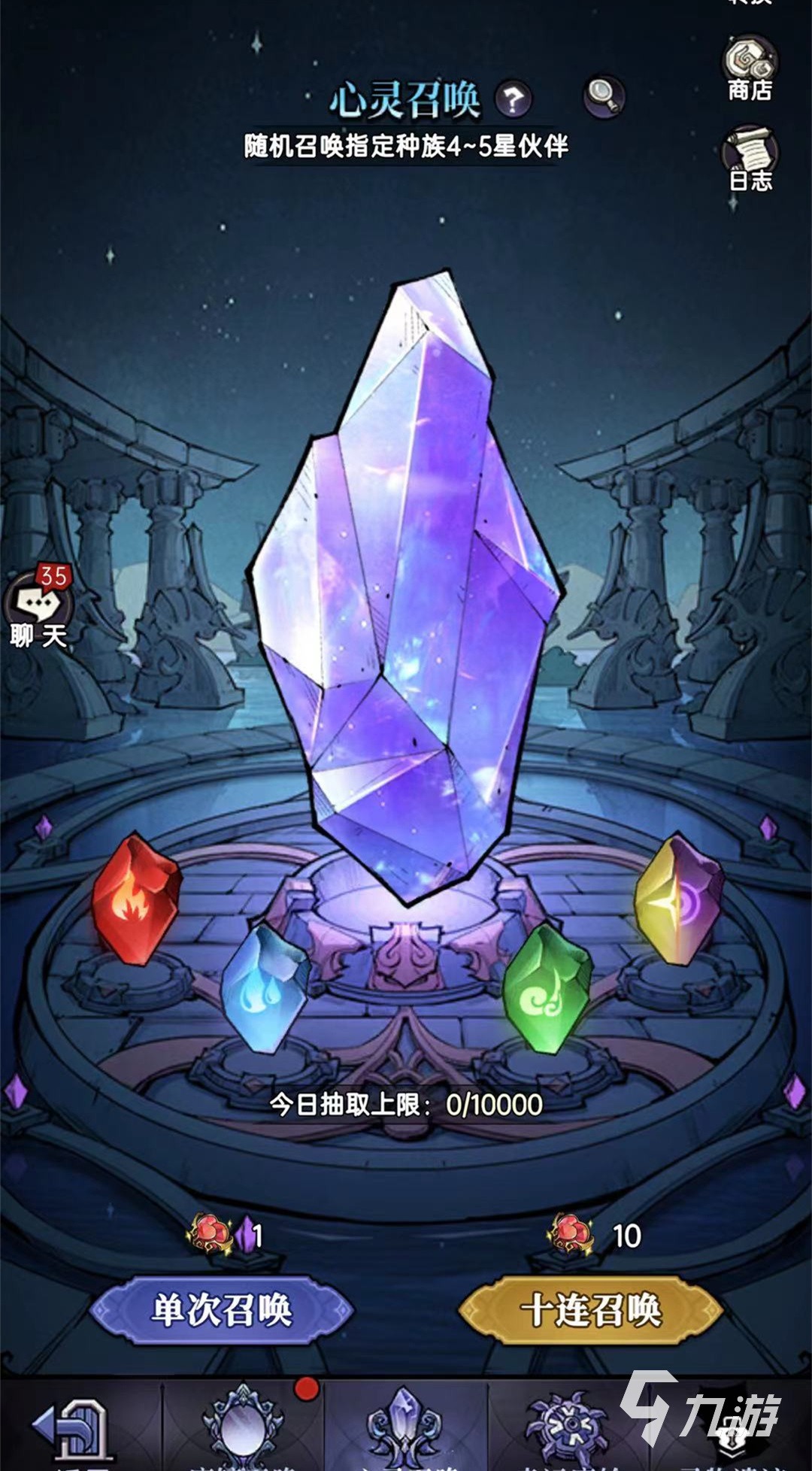 第2種獲取方法請玩家前往心靈召喚,和剛才所講的操作步驟差不太多,也是分為單次召喚和十連召喚,不同之處在于抽取要用心靈水晶,十連召喚需要用10個心靈水晶來抽取,沒有什么上線次數(shù),基本都是玩家的心靈水晶不夠了。
