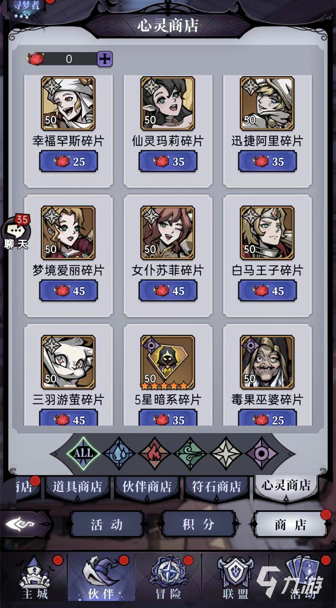 第3種獲取方法請玩家前往火柴商行,在心靈商店中購買,同樣是需要心靈水晶,只要45個心靈水晶就能獲取50個夢境愛麗碎片,第4種獲取夢境愛麗的方法是要求小伙伴們點擊VIP禮包去購買,即可獲得人物角色。