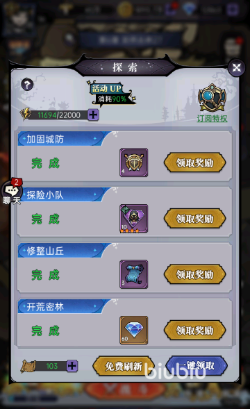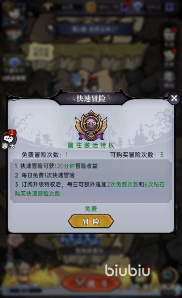 當(dāng)然,主線劇情在推進(jìn)的過程當(dāng)中,還會(huì)出現(xiàn)卡關(guān)的情況,如果進(jìn)入到該階段之后,玩家們則需要將獲取伙伴經(jīng)驗(yàn)的目光轉(zhuǎn)移到快速冒險(xiǎn)功能當(dāng)中。在該功能里玩家們可以直接免費(fèi)使用一次兩小時(shí)掛機(jī),隨后只需要消耗掉小部分鉆石依然可以獲取多次兩小時(shí)掛機(jī)收益。這一過程當(dāng)中同樣可以得到大量伙伴經(jīng)驗(yàn)。
