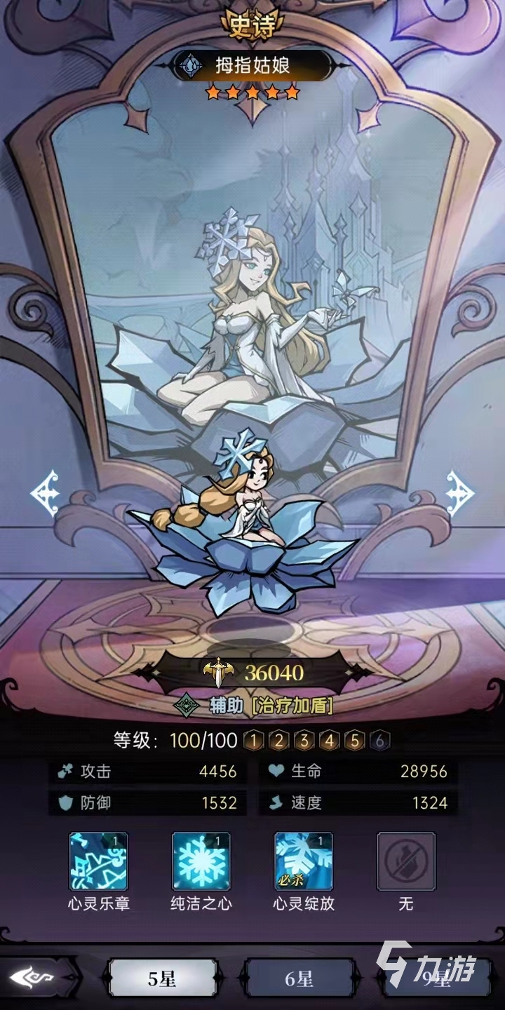 拇指姑娘的一技能為心靈樂章,屬于一個(gè)單體治療技能,可以為友方生命值最低的單位恢復(fù)拇指姑娘攻擊192%的生命,此外,還能為隊(duì)友增加15%的扛暴擊效果,持續(xù)時(shí)間為兩回合,他的第二個(gè)技能是純潔之力,屬于一個(gè)被動(dòng)技能,拇指姑娘在達(dá)到六星的時(shí)候,生命以及攻擊都將提升10%,這一技能不需要手動(dòng)釋放,只要品階達(dá)到標(biāo)準(zhǔn)就將自動(dòng)獲取。