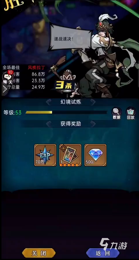 在主線劇情推關(guān)過程中,我們可以利用掛機(jī)系統(tǒng)來給予我們連續(xù)不斷的收益。在玩法頁面里面,我們看到快速冒險這個按鈕,這按鈕的功能可以為我們提供兩小時的額外操作并得到相關(guān)的收益。這功能首次是免費(fèi)提供給小伙伴使用的,之后使用則需要消耗數(shù)量不多的鉆石來進(jìn)行,性價比高,值得平民小伙伴直接買滿。
