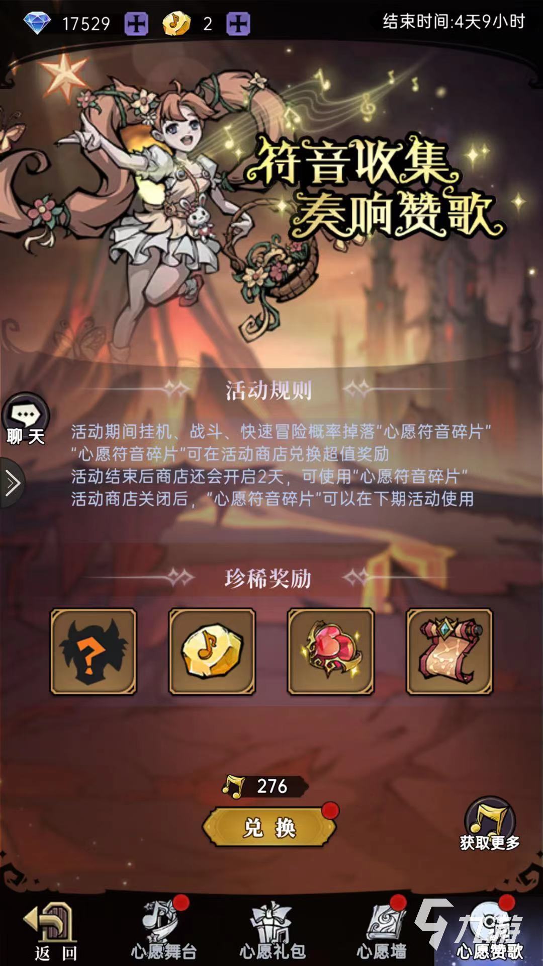 在心愿贊歌中,玩家通過戰(zhàn)斗快速冒險有一定概率獲得心愿符音碎片,通過心愿符音碎片道具可以在此活動商店中兌換不同的獎勵,獎勵中包括奇跡卷,心靈水晶,心愿符音等。所獲得道具可以用于其他活動中使用。
