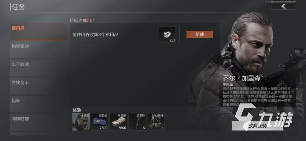 而在上面提到的這個軍用品任務(wù),就需要小伙伴們?nèi)ド焦仁占齻€軍用品,想要完成該任務(wù)的話,小伙伴們就要前往山谷地圖,只要在這張地圖上找到三個軍用物品,然后順利帶出局,然后將三個軍用物品交給任務(wù)npc,就能夠搞定這個任務(wù),拿到任務(wù)的全部獎勵了哦。