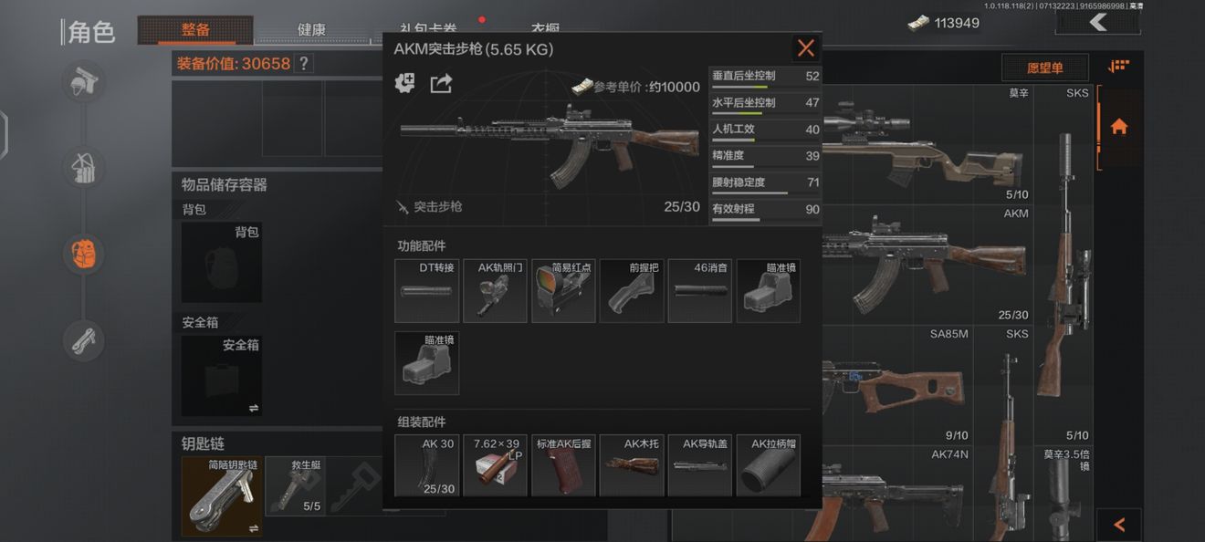 不過AKM的后坐控制還是比較低,直接用原裝版本壓槍會有些費力,它的改裝方面,首先需要考慮加裝瞄具和消音。要是想要更進一步的改裝,可以考慮將默認的木托換成81槍托,后握把換成輕型AK后握,這種的性價比相對要好一些,能有效的提升人機工效和后坐控制,再考慮更換護木并加裝前握把。