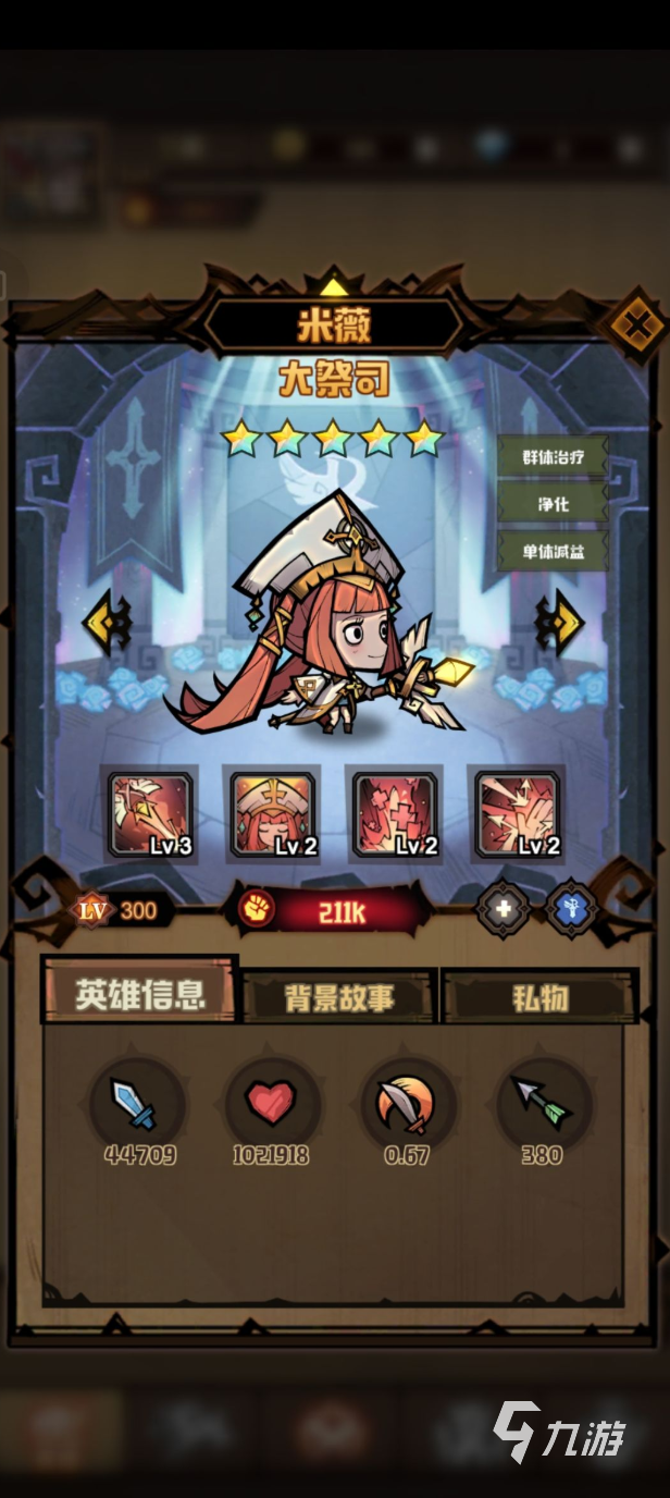 “大祭司”米薇最為奶媽中的扛把子,自然是玩家優(yōu)先培養(yǎng)的一員,培養(yǎng)指數(shù)同樣五顆星。米薇的回奶能力極強(qiáng)可以瞬間把殘血的隊(duì)友救活,而其攻擊成功后也可以給自身回血。技能中帶有讓對(duì)方兩秒內(nèi)攻速大減,為本方偷襲提供了機(jī)會(huì)。大招不僅有免控效果,還可以驅(qū)散己方成員身上的負(fù)面狀態(tài)。