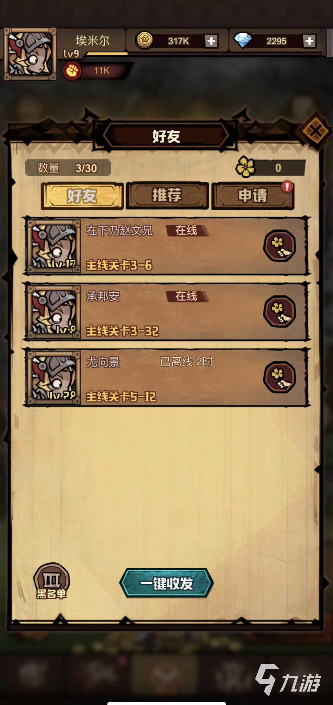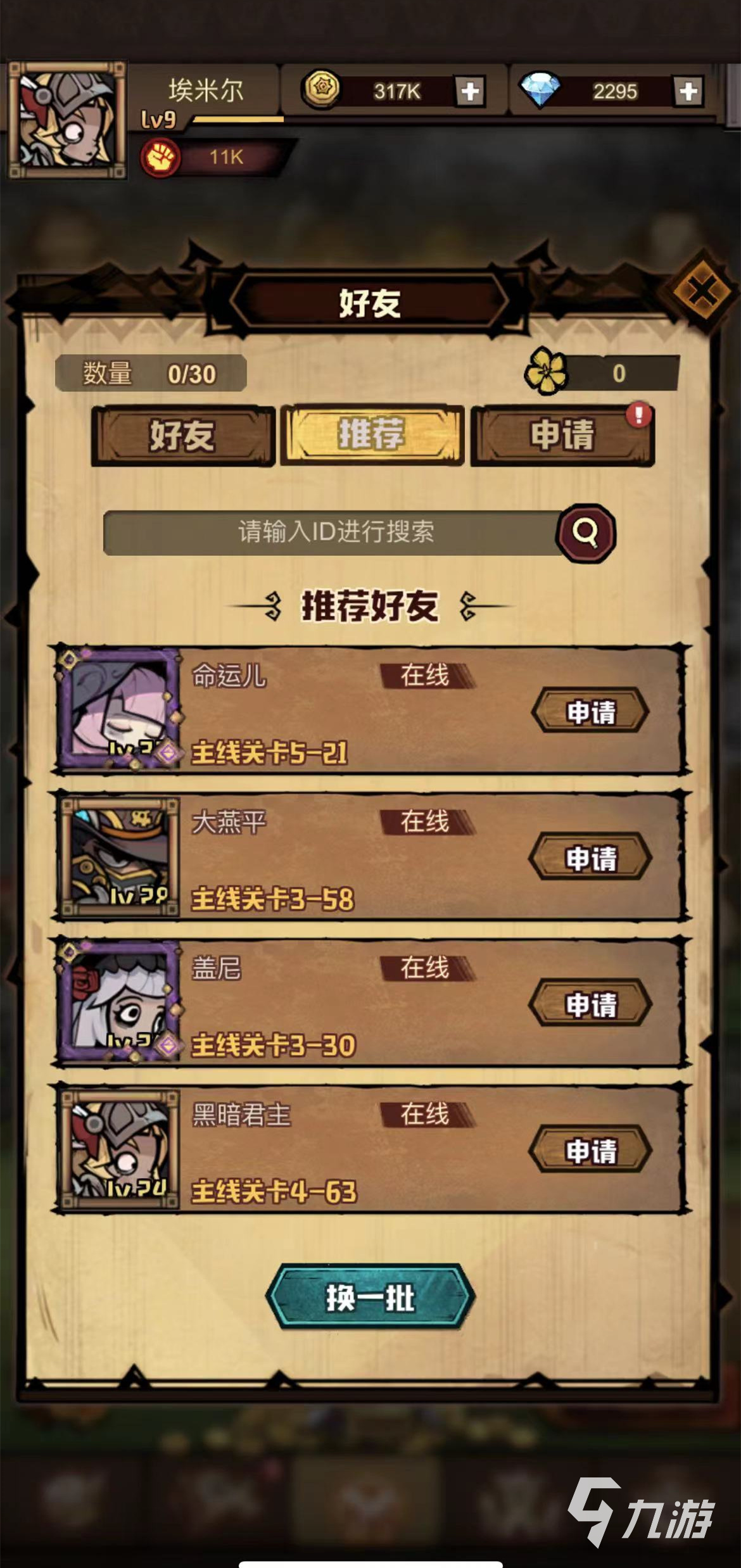 添加好友的方式也非常簡單,玩家只需要點擊界面右上方的好友按鈕進入,里面分別有3個列表,好友,推薦以及申請,小伙伴可以點擊推薦里面的玩家,看看哪個闖關卡多的玩家可以進行申請?zhí)砑訛楹糜?,等到對面玩家同意就可以了,當然,玩家一定要看看好友是否在線,如果玩家不在線,是不會同意玩家的。