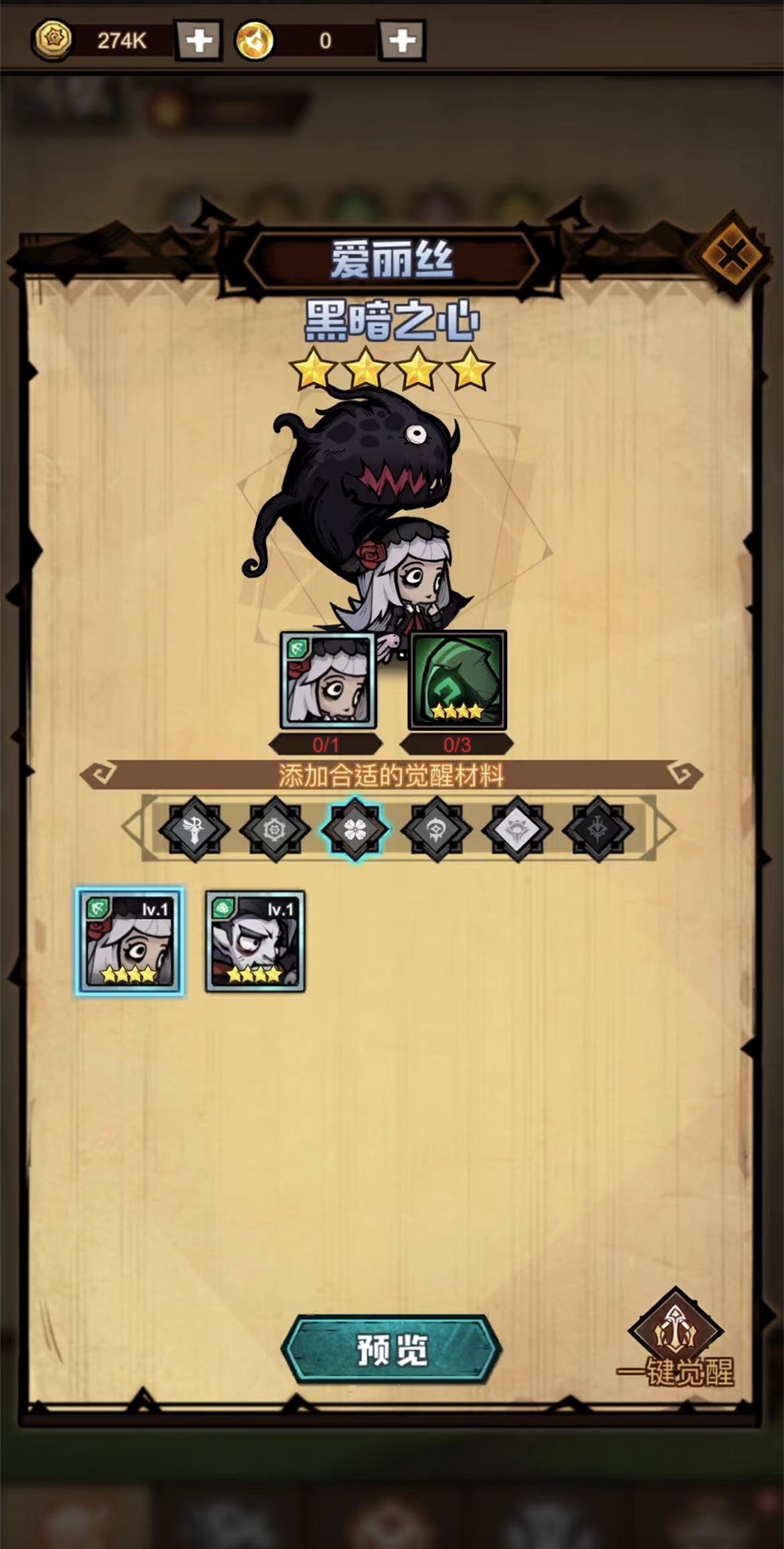 小編簡(jiǎn)單給玩家舉個(gè)例子,比如選擇愛(ài)麗絲這個(gè)人物英雄,首先需要擁有這個(gè)英雄,同時(shí)還要擁有添加合適的覺(jué)醒材料,方可覺(jué)醒成功,成功以后的英雄名為黑暗之心愛(ài)麗絲,原本的愛(ài)麗絲只是一個(gè)小女孩,覺(jué)醒以后的愛(ài)麗絲頭上會(huì)有一個(gè)黑色的小怪物。