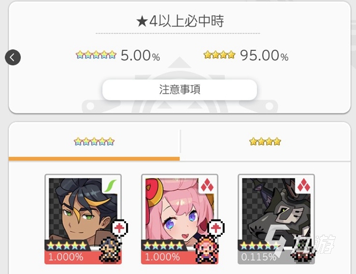 比如五星角色中的米格爾以及菊乃,目前是概率up活動,所以抽取到的概率是1%,剩下五星角色概率都是0.115%,四星角色弗洛雷塔和小羽概率是2%,剩下的四星角色概率就都是0.552%了,裝備扭蛋方面也是同理。而且世界彈射物語游戲的扭蛋也是有保底機(jī)制的,所以才會分一般概率以及四星以上必中概率,還是非常良心的。