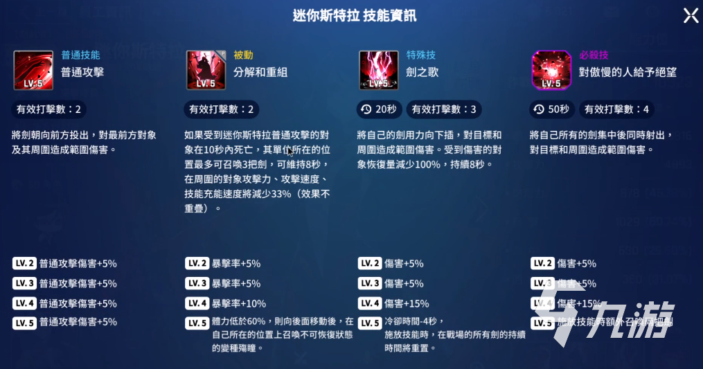 第二個是斯特拉這個員工,該員工是突擊隊員的定位,也是一個地面的攻擊單位。在能力上是有很多設(shè)定的, 被動技能在擊殺目標之后會在位置上召喚劍武器,該武器會自動的攻擊周圍單位,最多召喚三把,持續(xù)的時間八秒。在劍周圍的單位還會降低攻擊力、攻擊速度、技能充能速度33%,影響還是很大的。而必殺技能會使用所有的劍攻擊,造成一個范圍的傷害。