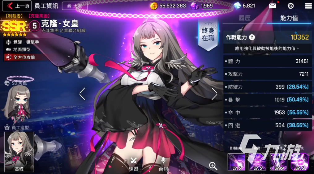 第三個推薦的是克隆女皇,這個員工是狙擊手的定位,輸出目標也是地面單位的。在能力上被動技能有單位死亡的時候可以獲得1%的技能充能速度,最多提升15%。在釋放四次之后,會將周圍敵人擊退,同時附加眩暈效果,并封印三秒的時間。而必殺技能的話是召喚能量球來攻擊,范圍傷害是很大的,覺醒之后輸出能力可以獲得極大提升。