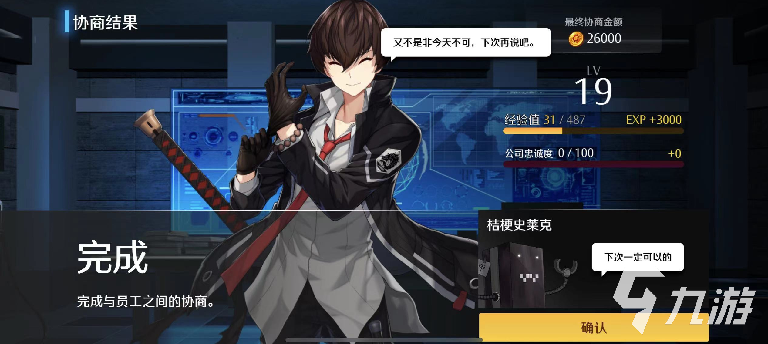 玩家們需要進行2次工資協(xié)商活動,通過工資協(xié)商,可以大幅度提升角色的等級以及經(jīng)驗值,點擊跳轉(zhuǎn)按鈕以后,選擇一下指定的對象,在右側(cè)就會看見協(xié)商預計的結(jié)果,經(jīng)驗值要求達到85,公司忠誠度要達到百分之百,并且協(xié)商的材料也需要很多,最多可添加500個協(xié)商材料,材料足夠以后點擊開始協(xié)商,協(xié)商的費用會顯示在界面下角。