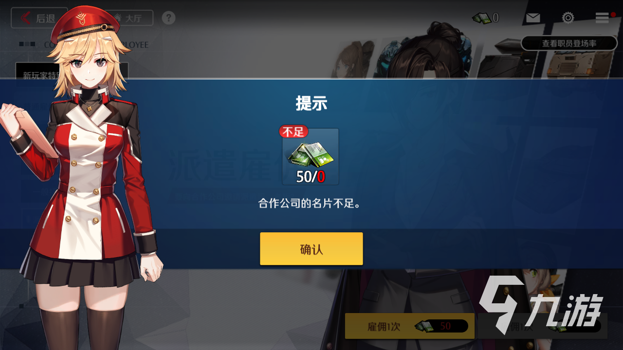 前面也說(shuō)了,這個(gè)名片的作用就是用來(lái)招募。在對(duì)應(yīng)的派遣招募中進(jìn)行使用。五十個(gè)名片就可以進(jìn)行十次的雇傭操作,雖然說(shuō)無(wú)法獲得一些高級(jí)的員工單位,但是一些基礎(chǔ)的材料單位還是可以得到的。