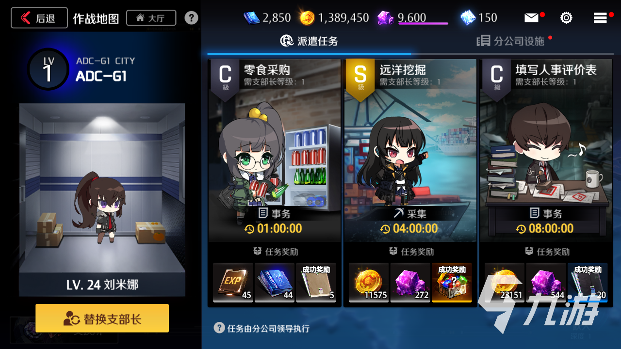 第三種就是世界地圖的分公司來(lái)獲得了,分公司的建立對(duì)于等級(jí)和章節(jié)是有一定要求的。在建立之后,通過(guò)分公司是可以獲得大量資源獎(jiǎng)勵(lì)的。在獲取資源的時(shí)候,會(huì)有一定的幾率獲得名片的獎(jiǎng)勵(lì)。注意這個(gè)幾率是根據(jù)分公司等級(jí)和領(lǐng)導(dǎo)來(lái)決定的,大家要注意好設(shè)定操作。