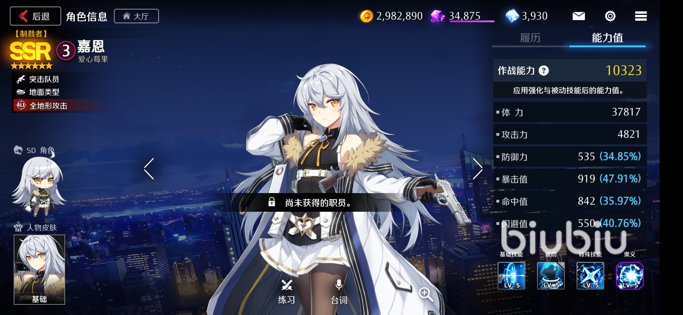 嘉恩,SSR級別員工,定位是全方位的突擊隊員,地面類型,3費。