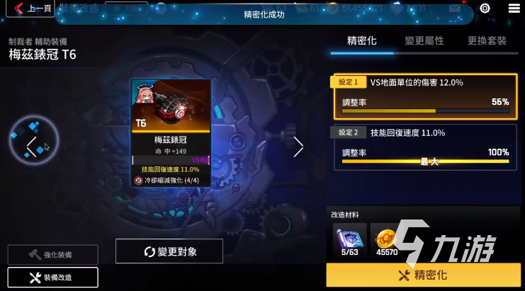 先來看一看操作,操作的話在進入到員工或者說裝備界面之后,點擊想要精密化的裝備,之后就可以來到操作的界面中,默認的就是精密化的提升。在選擇好裝備之后,右側會顯示當前裝備的設定屬性,想要提升哪個屬性,直接點擊一下就行了。在確定好屬性之后,點擊下方的精密化就可以完成操作了,在操作上還是很簡單的。