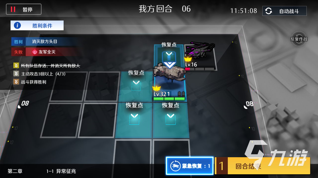 第二個(gè)條件就是戰(zhàn)斗的進(jìn)度不是很順利,大家都知道兩個(gè)小隊(duì)的話培養(yǎng)是要很多資源的。而大部分的玩家第二個(gè)小隊(duì)都是東拼西湊的,所以說(shuō)在實(shí)戰(zhàn)能力上是肯定會(huì)遜色很多的。那么在這個(gè)時(shí)候和敵人作戰(zhàn)的話,那么在區(qū)域中就會(huì)有幾率觸發(fā)緊急恢復(fù)點(diǎn)這個(gè)機(jī)制了。這個(gè)方式的觸發(fā)幾率是相對(duì)較高的,可以幫助玩家更好的恢復(fù)隊(duì)伍的體力值。