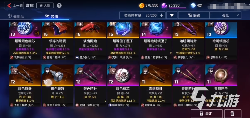 最后就是輔助裝備,輔助裝備的話屬性很多,選擇還是要看員工的定位。固定屬性要帶有閃避和命中,輸出的話要暴擊和攻擊,防御職業(yè)就要傷害減免和擊退抵抗就行了。