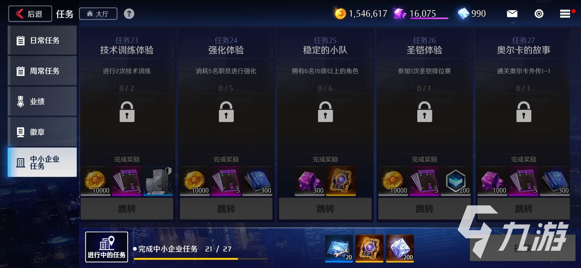 中小企業(yè)任務(wù):中小企業(yè)任務(wù)就相當(dāng)于玩家們的成就任務(wù),需要玩家們在游戲中多多探索,基本上每個中小企業(yè)任務(wù)都可以獲得五個能力鑒定技能書,而且都是特級的,所以說優(yōu)先按照中小企業(yè)任務(wù)來在異界事務(wù)所游戲中快速發(fā)育是不錯的選擇,順便可以把每日任務(wù)以及日常任務(wù)全部通過。