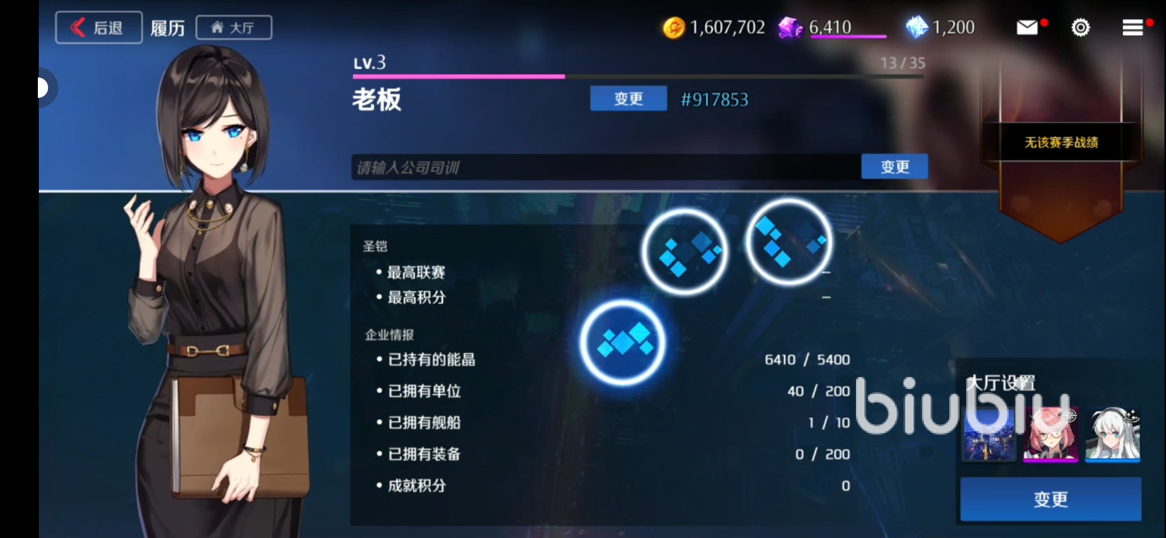 2、點(diǎn)擊圓形等級(jí)圖標(biāo),進(jìn)入到我們的個(gè)人履歷界面,在這里我們可以看到當(dāng)前角色的一些相關(guān)信息。