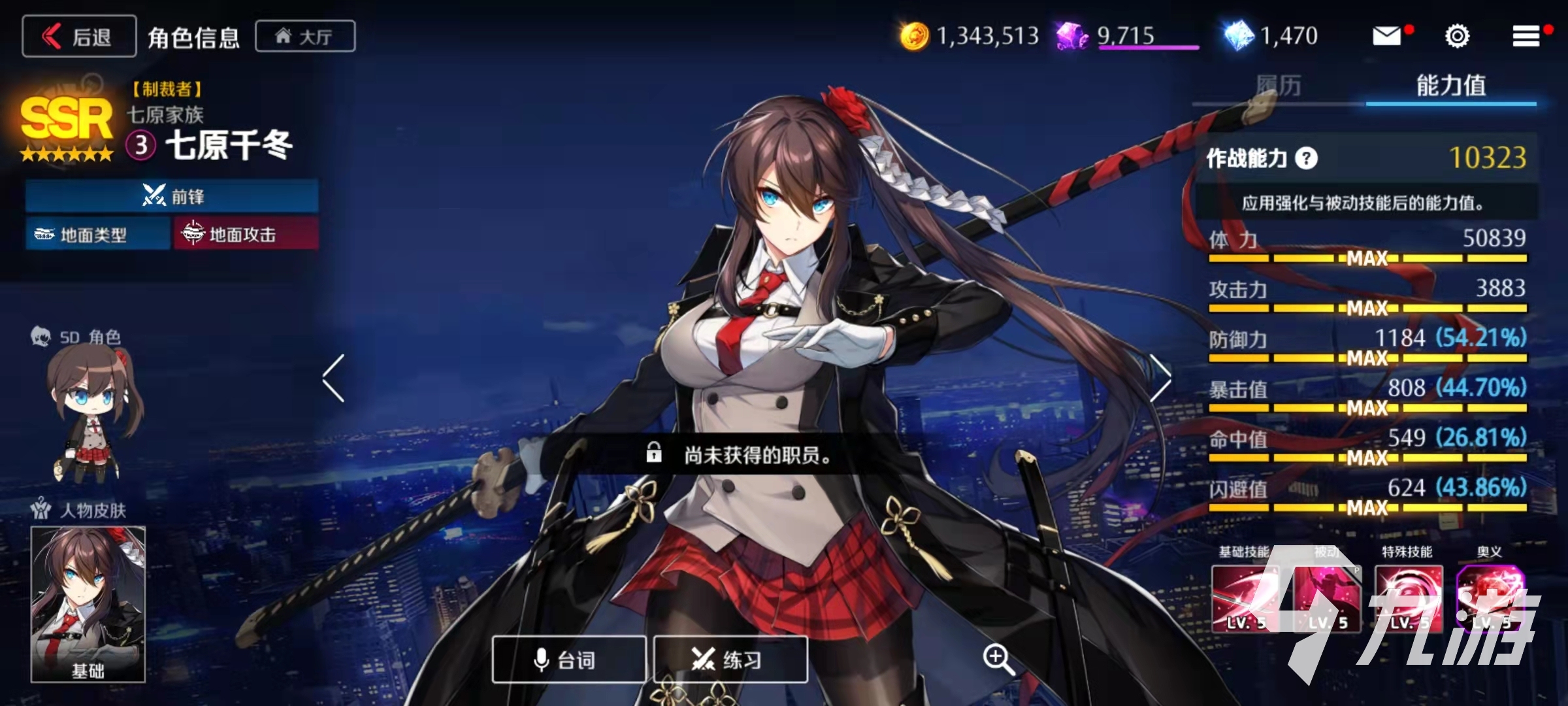 李秀妍的面板屬性中,閃避達到了837點,幾率是51.15%,被動技能可以在體力值低于半血的時候,增加傷害減免和攻擊力。特殊技能可以在釋放技能的時候降低受到的傷害,奧義技能可以使用大劍對前方造成傷害,同時釋放的時候降低受到的傷害。李秀妍作為前鋒,自身的閃避加上減傷,可以起到和護衛(wèi)一樣的生存效果。七原千冬的閃避值達到了624點,幾率是43.86,自身的被動技能可以在攻擊的時候消減對方的防御,還可以眩暈傷害目標,特殊技能可以在技能之后疊加傷害。