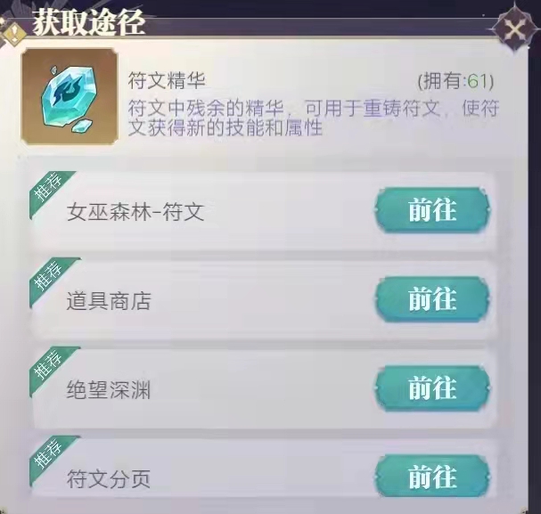 符文精華可用于鑄造符文,為其獲得額外的屬性以及技能,目前游戲內(nèi)獲取符文精華的方法一共有五種,第一種就是通過女巫森林獲取,玩家完成特定的主線劇情之后可以解鎖副本玩法,女巫森林就是其中的玩法之一,進(jìn)入女巫森林之后玩家選擇符文副本,只要能成功完成挑戰(zhàn)就會(huì)獲得一定數(shù)量的符文精華,每日最多可以挑戰(zhàn)五次,如果再想要進(jìn)行挑戰(zhàn)就需要花費(fèi)一定數(shù)量的鉆石獲取額外的挑戰(zhàn)次數(shù)。