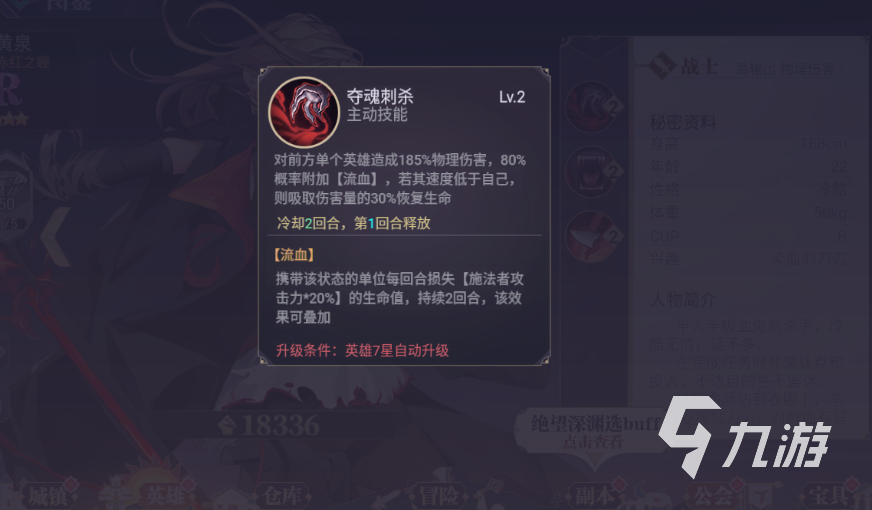 黃泉這個(gè)英雄在品級(jí)上是一個(gè)SR級(jí)別的英雄,這個(gè)品級(jí)的英雄在游戲中算是中堅(jiān)力量,獲取難度中等,在實(shí)力上也是很不錯(cuò)的。在定位上是一個(gè)戰(zhàn)士類型的角色,戰(zhàn)士的定位在戰(zhàn)斗中攻擊和防御都還是很不錯(cuò)的。下面再來(lái)看一看技能。
